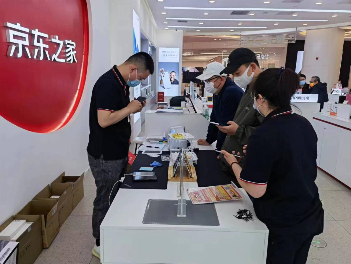 消費者在京東之家線下門店體驗手機以舊換新服務