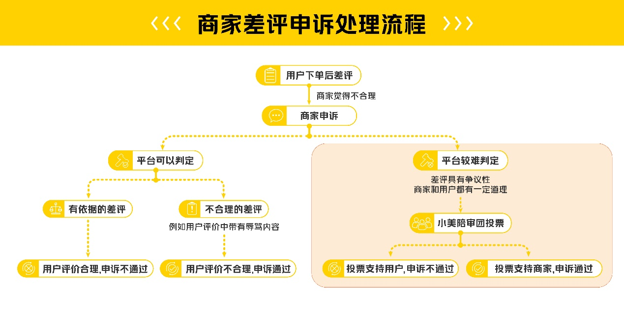 為了保障用戶合理評(píng)價(jià)權(quán)益、避免商家遭受不合理差評(píng)的影響,美團(tuán)外賣升級(jí)迭代產(chǎn)品功能,引入公眾評(píng)審機(jī)制——小美陪審團(tuán)。用戶和商家之間如果出現(xiàn)爭(zhēng)議差評(píng),且雙方難以主動(dòng)達(dá)成和解時(shí),熱心的社會(huì)公眾、用戶和商家都可以報(bào)名作為評(píng)審員,根據(jù)用戶和商家雙方提供的材料判斷,并對(duì)爭(zhēng)議差評(píng)進(jìn)行投票判定。