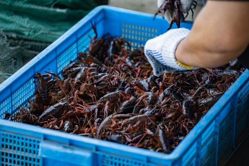 在君璐軒稻麥種植家庭農(nóng)場的一片藕田上,養(yǎng)殖工人正在打撈小龍蝦,“藕田中的水草、浮游生物等是小龍蝦的天然飼料,同時(shí)小龍蝦的排泄物為蓮藕成長提供有機(jī)養(yǎng)分,非常綠色、健康。”君璐軒稻麥種植家庭農(nóng)場的負(fù)責(zé)人介紹說,養(yǎng)殖小龍蝦不是件容易事,從種苗、下苗、投喂到捕撈等諸多環(huán)節(jié),每個(gè)環(huán)節(jié)的把控都要非常精準(zhǔn),才能最大程度上降低損耗,保證小龍蝦的鮮活,“在龍蝦的喂養(yǎng)上,我們使用的是蛋白含量40%以上的小龍蝦專用飼料,有效保證小龍蝦吃的更有營養(yǎng),肉質(zhì)更Q彈鮮美。”