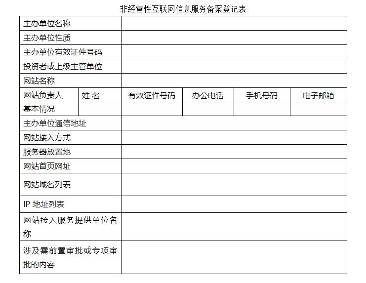 第七條 擬從事非經(jīng)營性互聯(lián)網(wǎng)信息服務(wù)的,應(yīng)當(dāng)通過信息產(chǎn)業(yè)部備案管理系統(tǒng)如實填報《非經(jīng)營性互聯(lián)網(wǎng)信息服務(wù)備案登記表》(以下簡稱 “ 《備案登記表》 ” ,格式見本辦法附錄),履行備案手續(xù)。