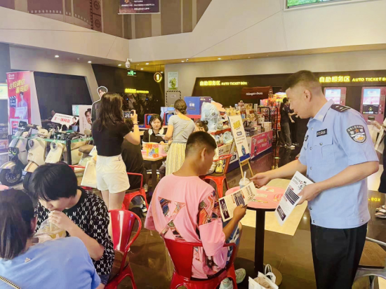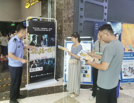 影片開始前,該分局反詐中心民警通過(guò)在影院醒目位置張貼反詐海報(bào)、發(fā)放反詐手冊(cè)、懸掛反詐條幅、擺放反詐展板、講解反詐知識(shí)、問(wèn)答互動(dòng)等多種形式,向觀影群眾普及反詐知識(shí),讓大家對(duì)當(dāng)前電信網(wǎng)絡(luò)詐騙發(fā)案形式及種類有了更直觀、更深刻的認(rèn)識(shí)。此外,民警還現(xiàn)場(chǎng)指導(dǎo)大家下載安裝國(guó)家反詐中心APP。