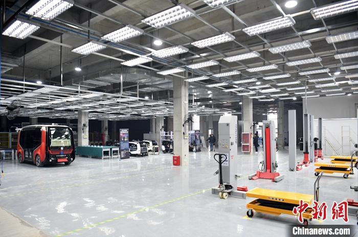 圖為2月17日,雄安新區(qū)科創(chuàng)中心中試基地里的悅享雄安科技有限公司展示的智能車輛。 中新社記者 韓冰 攝