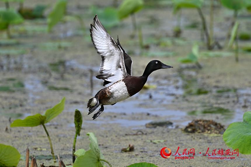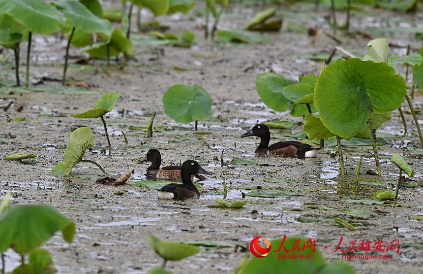 人民網(wǎng)雄安6月25日電 (劉師豪、宋燁文)近日,來自雄安新區(qū)安新縣的愛鳥護鳥志愿者、生態(tài)攝影師張學(xué)農(nóng)在白洋淀某處水域發(fā)現(xiàn)了約30只國家一級保護野生動物青頭潛鴨的身影,并且拍到了青頭潛鴨雌鳥與雛鳥活動的影像。