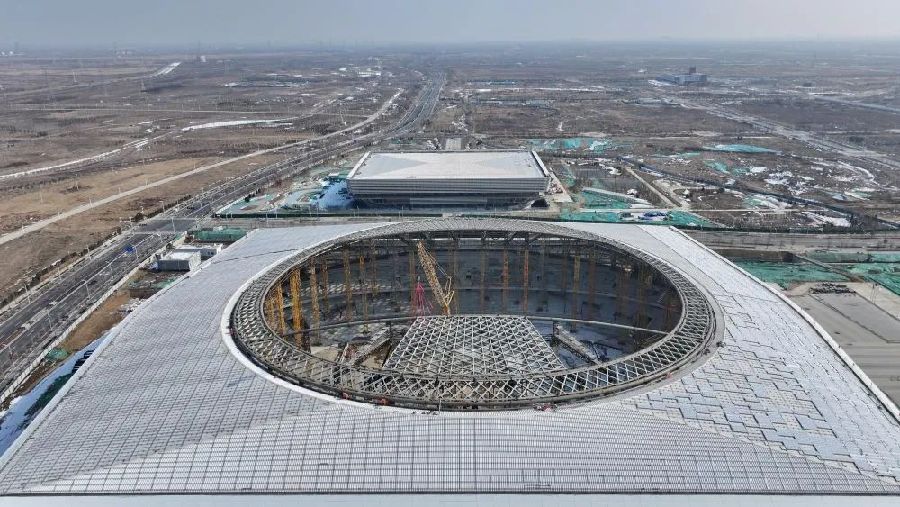雄安體育中心建設(shè)現(xiàn)場(2月7日攝,無人機照片)。新華社記者牟宇 攝