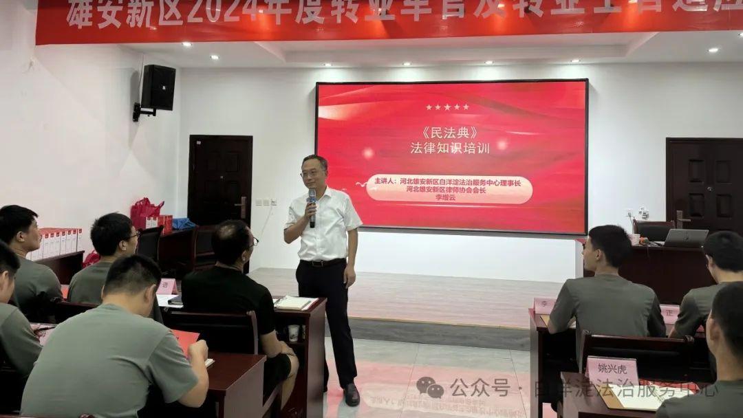 8月1日,河北雄安新區(qū)管理委員會公共服務(wù)局民政退役軍人組委托白洋淀法治服務(wù)中心為2024年度轉(zhuǎn)業(yè)軍、士官開展法治培訓(xùn)。