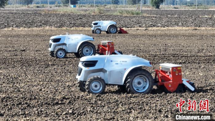 10月22日,河北雄安新區(qū)安新縣端村鎮(zhèn)關(guān)城二村一農(nóng)田內(nèi),幾臺“鴻鵠T70”電動智能拖拉機(jī)正在進(jìn)行秋播作業(yè)。據(jù)了解,今年雄安新區(qū)公共服務(wù)局通過實施“雄安新區(qū)農(nóng)業(yè)全產(chǎn)業(yè)鏈數(shù)字化轉(zhuǎn)型示范應(yīng)用場景項目”,重點(diǎn)打造“數(shù)字決策+無人農(nóng)機(jī)”的無人農(nóng)場示范場景,依托國家數(shù)字農(nóng)業(yè)區(qū)域(京津冀)創(chuàng)新分中心與中國科學(xué)院雄安創(chuàng)新研究院(籌)第三代新能源智能農(nóng)機(jī)技術(shù),在雄安新區(qū)實施5000畝農(nóng)田“耕、種、管、收”全鏈條環(huán)節(jié)無人化示范作業(yè)。