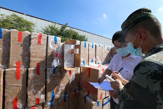 ▲清點(diǎn)貨物