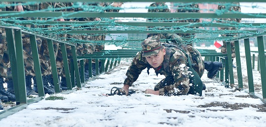 圖為官兵在雪地里訓(xùn)練。