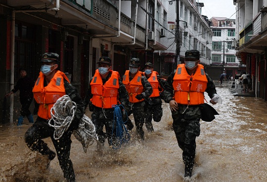 圖為武警官兵組織群眾轉(zhuǎn)移。