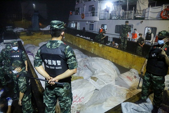 7月15日,山東煙臺(tái)海警局成功查獲一起涉嫌走私凍品案,現(xiàn)場抓獲嫌疑人27人、查扣涉嫌走私凍品船舶1艘、涉案車輛15輛,查獲凍品約300噸。