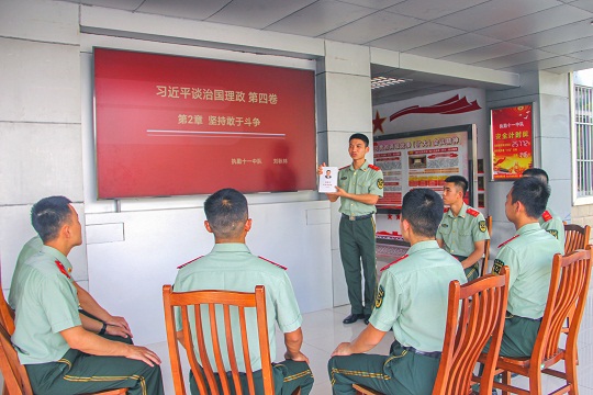 圖為官兵通過開展讀書交流會學習《習近平談治國理政》第四卷。