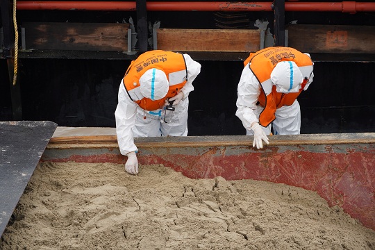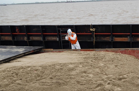 當(dāng)日清晨,上海寶山海警局獲悉,有1艘涉嫌非法運(yùn)砂的貨船進(jìn)入管轄海域,該局立即派遣正在巡邏的執(zhí)法船前往核查。執(zhí)法船接到命令后迅速前往其途徑海域攔截,經(jīng)過核查比對(duì),執(zhí)法艇在1小時(shí)內(nèi)迅速鎖定嫌疑船只。執(zhí)法人員登船后發(fā)現(xiàn),該船貨艙內(nèi)共裝有海砂1000余噸,且無法提供任何相關(guān)合法手續(xù),涉嫌非法運(yùn)砂。目前,案件正在進(jìn)一步偵辦中。