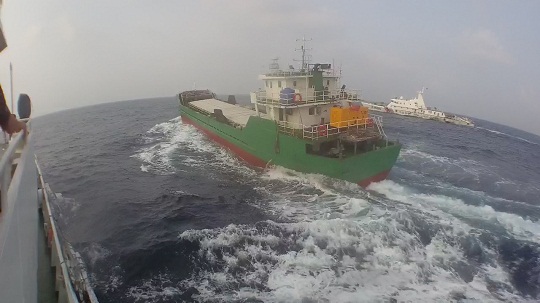 圖為追緝涉嫌走私船舶現(xiàn)場。