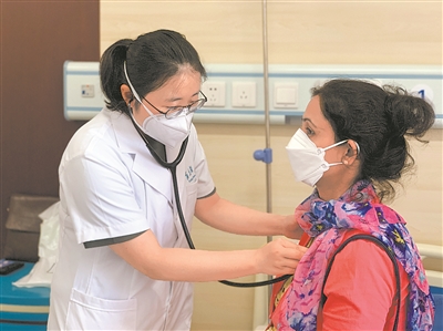 圖為專家組成員為患者查體。軍醫(yī)專家組提供