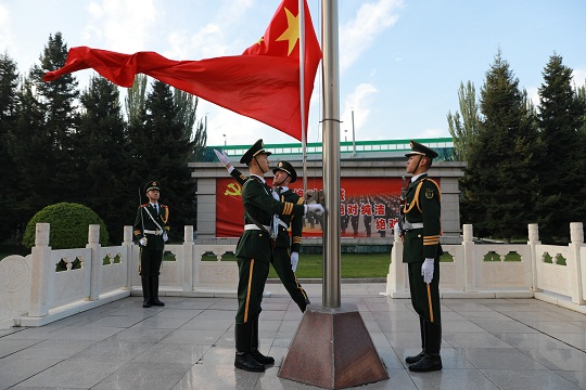 圖為總隊黨委機關升旗儀式現場。郭紫陽 攝