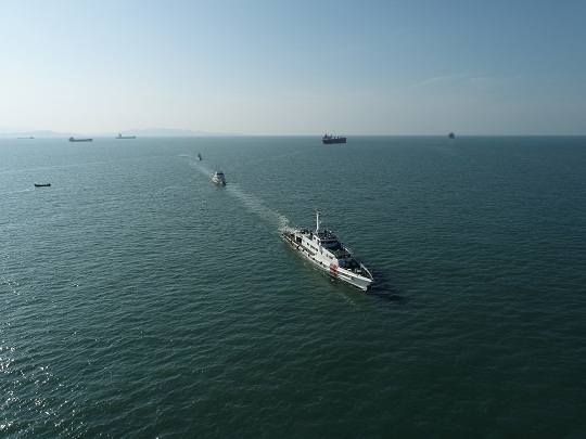 國慶節(jié)以來,山東威海海警局持續(xù)加大艦艇出航頻次,增加海上巡邏艦艇數量,常態(tài)保持執(zhí)法艦艇在航,提高海上見警率。采取“大小搭配、遠近結合”的科學模式,指派東江艦、白石艇等大型艦艇遠海巡航,并靈活運用摩托艇開展近海巡查,切實發(fā)揮各自優(yōu)勢,區(qū)分重點、周密布置,全面加強轄區(qū)海域巡邏管控,及時掌握轄區(qū)海域情況和海上最新態(tài)勢,牢牢掌握海上執(zhí)法主動權,凈化海上環(huán)境,維護海上安全。