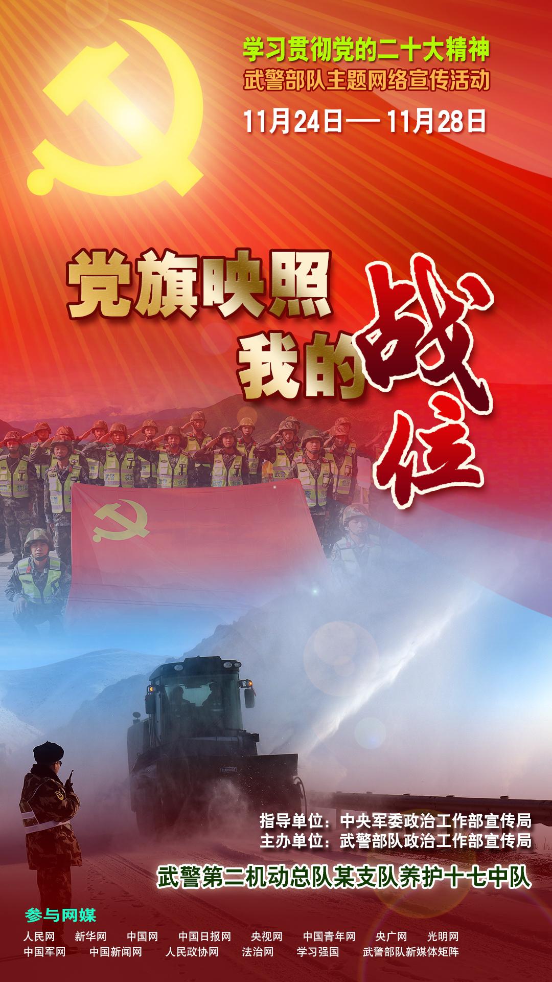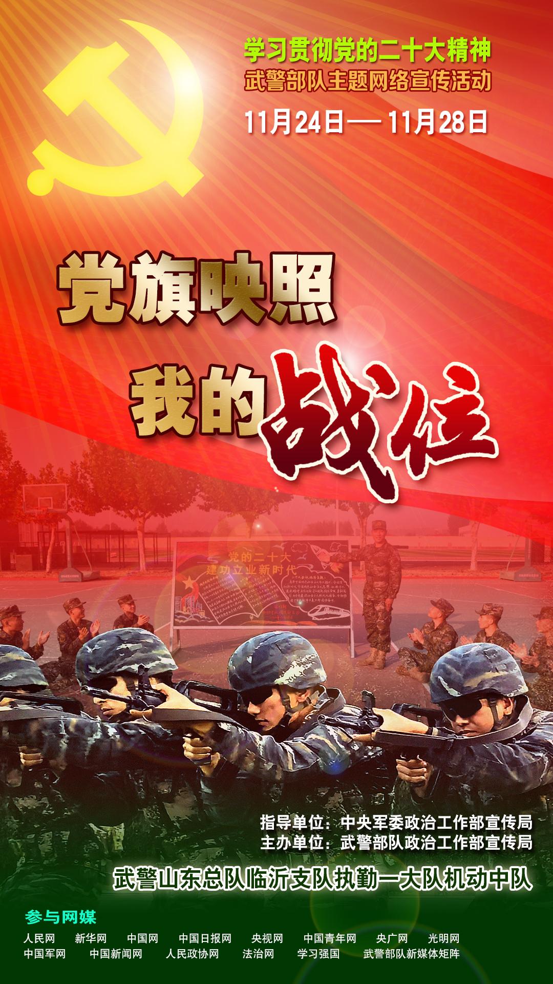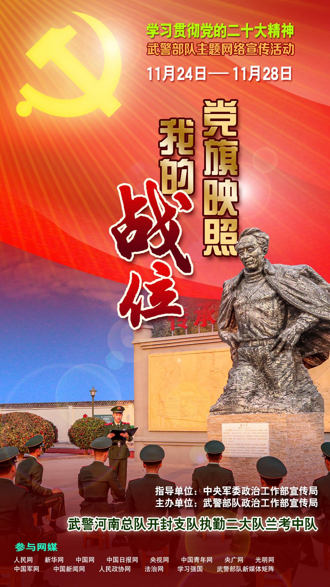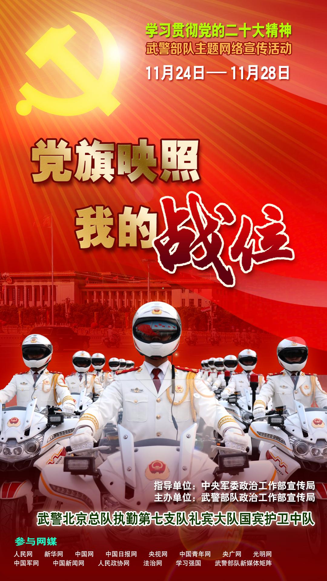 本報訊 記者廉穎婷 黨的二十大召開以來,從南國小島到北國邊疆,從茫茫草原到雪域高原,從繁華都市到偏遠山村,駐守祖國各地的武警官兵正以最大的政治熱情和政治自覺,投入到深入學習貫徹黨的二十大精神中來。為充分展現(xiàn)學習貫徹的火熱場景和生動實踐,著力反映忠誠維護核心、矢志奮斗強軍的堅定意志和嶄新風貌,近期武警部隊策劃組織了“黨旗映照我的戰(zhàn)位”主題網(wǎng)絡宣傳活動,邀請多家主流網(wǎng)絡媒體,對武警北京總隊執(zhí)勤第七支隊禮賓大隊國賓護衛(wèi)中隊、武警山東總隊臨沂支隊執(zhí)勤一大隊機動中隊、武警河南總隊開封支隊執(zhí)勤二大隊蘭考中隊和武警第二機動總隊某支隊養(yǎng)護十七中隊4個先進基層單位進行采訪報道。