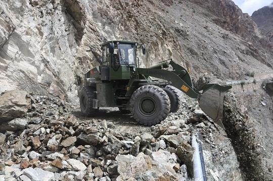 2018年6月,在“嘎瑪溝”路段內(nèi),一塊近10米高的巨石橫在道路中央,造成整個公路線嚴重堵塞。養(yǎng)護十七中隊官兵受領任務后,第一時間攜帶專業(yè)破拆工具,緊張有序地開展搶險作業(yè)。經(jīng)過近一天努力,成功將巨石破開,道路恢復暢通?!翱粗惠v輛車經(jīng)過我們裝備時鳴笛致意,我感到所做的事都是值得的。”第一次參加搶險任務的戰(zhàn)士楊龍說。