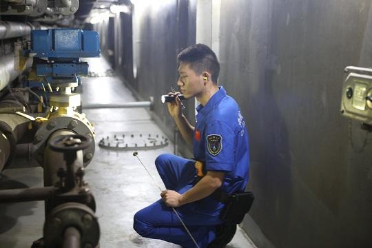 圖為動力系統(tǒng)船員對管隧進(jìn)行巡檢。