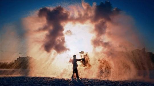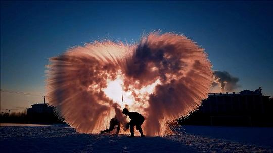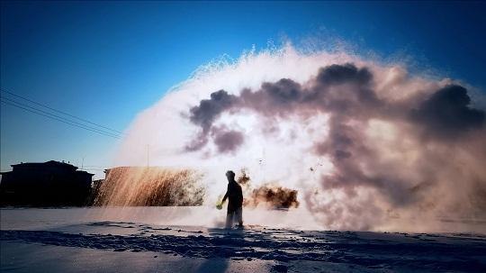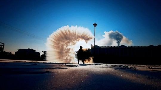 本報訊 記者韓瀟 通訊員陳小鵬 朱韜 王健州 近日,黑龍江地區(qū)大幅度降溫,伊春市最低溫度更是達(dá)到零下35℃。武警黑龍江總隊伊春支隊在訓(xùn)練之余開展特色文化活動“潑水成冰”,讓官兵感受冰雪文化的樂趣。低溫下,潑灑出的水和熱氣被瞬間凝結(jié)成冰、成霜、成凌,層次分明地在空中擴(kuò)散成煙花一般的絢爛,形成一幅藍(lán)天、白雪、白霧交織在一起的絕美畫卷。