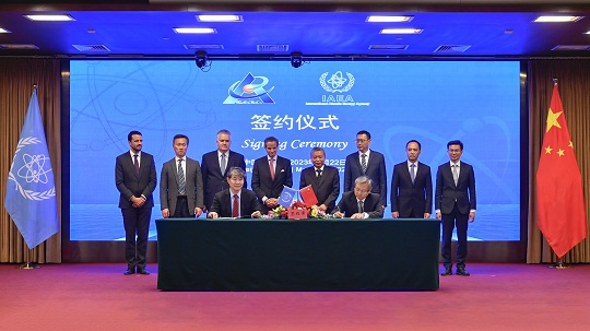 會(huì)見前,張克儉與格羅西簽署了《中國(guó)國(guó)家原子能機(jī)構(gòu)與國(guó)際原子能機(jī)構(gòu)關(guān)于小型模塊化反應(yīng)堆和核電基礎(chǔ)設(shè)施開發(fā)領(lǐng)域合作實(shí)際安排》,并共同見證國(guó)家原子能機(jī)構(gòu)、中核集團(tuán)、中國(guó)科學(xué)院合肥物質(zhì)科學(xué)研究院、中國(guó)原子能科學(xué)研究院等與IAEA簽署多項(xiàng)合作文件,內(nèi)容涉及核能應(yīng)對(duì)氣候變化、核技術(shù)診斷治療癌癥、核數(shù)據(jù)科學(xué)與核燃料循環(huán)、涉核新聞傳播與公眾溝通等多個(gè)領(lǐng)域。國(guó)家原子能機(jī)構(gòu)還向IAEA交付了一批由中方企業(yè)捐贈(zèng)的核安保專業(yè)設(shè)備,以及38項(xiàng)由中方翻譯完成的IAEA核安全標(biāo)準(zhǔn)和核安保導(dǎo)則。