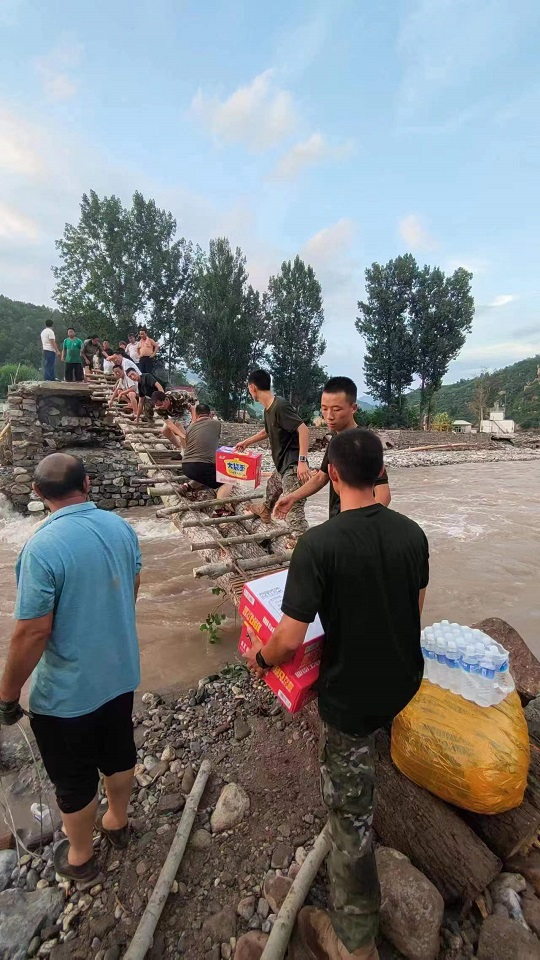 8月3日以來,武警河北總隊保定支隊緊急出動兵力奔赴淶水野山坡展開救援。由于山路被毀,官兵緊急修建簡易橋梁,打通救援道路,采取肩扛手抬等方式晝夜連續(xù)徒步向各受災村落搬運救災物資,救助受困群眾。截至目前,已累計搬運救災物資20余噸。