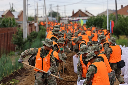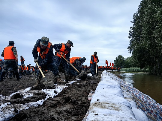 8月4日傍晚,齊齊哈爾市雅魯河水位暴漲,出現(xiàn)多處管涌和塌方。某合成旅200余名官兵深夜出征,次日凌晨3時(shí)抵達(dá),到位后快速展開(kāi)、快速搶險(xiǎn);因上游水庫(kù)泄洪,哈爾濱市雙城區(qū)拉林河面臨超大洪峰。8月7日凌晨4時(shí),某合成旅450名官兵星夜兼程奔赴河堤,與先期抵達(dá)的官兵一同加固堤防。
