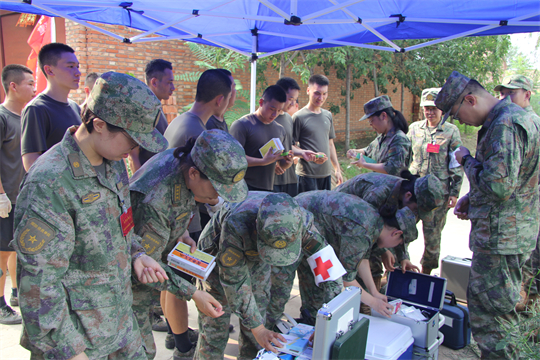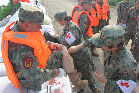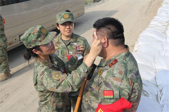 醫(yī)療隊(duì)抵達(dá)任務(wù)區(qū)域后,隊(duì)員們展開醫(yī)療救治工作。前線的戰(zhàn)士們由于蚊蟲叮咬和洪水長(zhǎng)期浸泡,部分官兵出現(xiàn)感冒中暑、腹瀉濕疹、扭傷擦傷、皮膚潰爛等傷病情況。醫(yī)療隊(duì)迅即展開診療,對(duì)患病官兵開方拿藥,對(duì)尚未患病官兵講授預(yù)防,僅第一日便巡診180人次,處理傷口6人,開展健康防護(hù)科普宣教3場(chǎng)次。