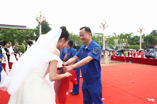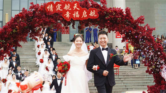 一項項儀式,將集體婚禮活動引向高潮。此次參加集體婚禮的航天工作者大多來自一線崗位,他們常年執(zhí)行高密度航天發(fā)射任務(wù),缺少時間與愛人團聚,有的婚期更是一再推遲。中心為一對對新人搭建起盛大的舞臺,舉辦隆重的集體婚禮,讓祖國見證他們的幸福與榮光。