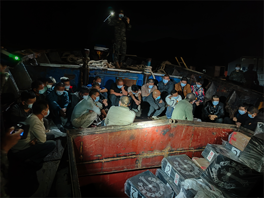 去年11月21日,廣東海警局接群眾舉報,指派廣東汕頭海警局聯(lián)合汕頭當(dāng)?shù)毓?、海關(guān)、煙草部門,在汕頭市南澳縣查獲一起走私香煙案,海陸聯(lián)動現(xiàn)場抓獲涉案人員30人,查扣車輛14臺、改裝船舶1艘、涉案香煙93000余條,總案值約2700萬元。經(jīng)查,該批香煙均無合法單證手續(xù)。