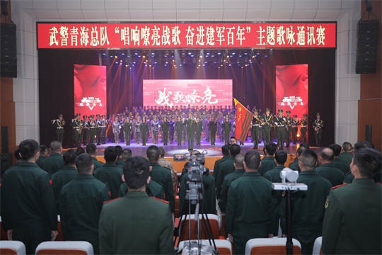 圖為武警青??傟牎俺戉诹翍?zhàn)歌 奮進建軍百年”歌詠通訊賽現(xiàn)場。