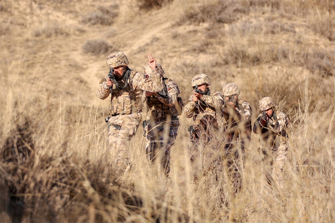 圖為官兵隱蔽接近任務(wù)區(qū)域。