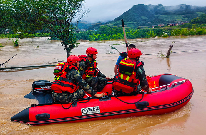 圖為武警陽(yáng)朔中隊(duì)官兵參加抗洪搶險(xiǎn)行動(dòng)。
