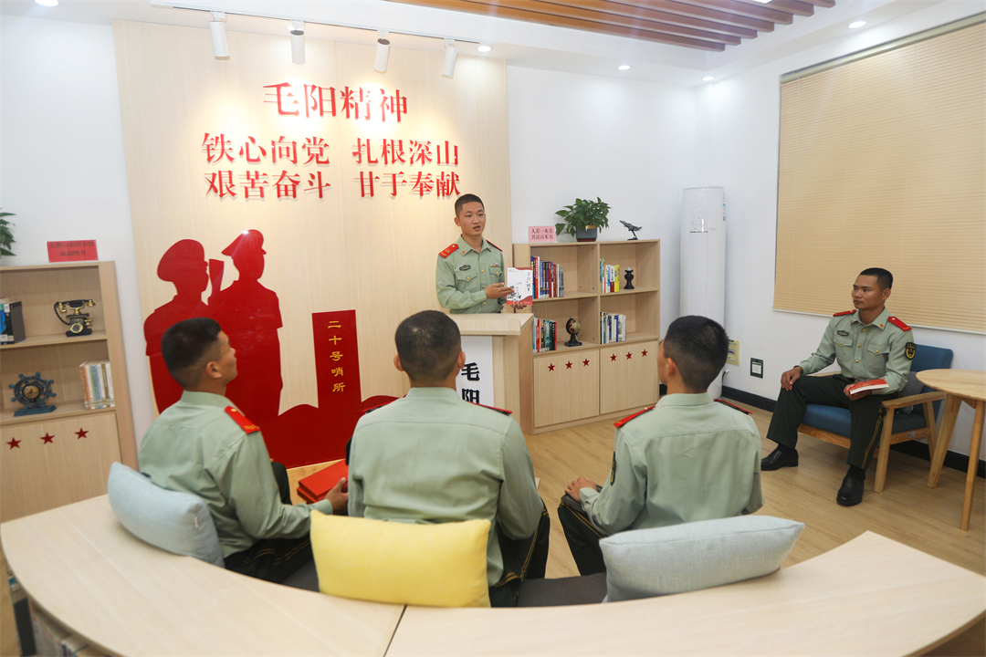 執(zhí)勤六中隊現(xiàn)任指導(dǎo)員金生清楚記得,今年3月到中隊任職時參加黨支部會議的場景。支部成員沒進(jìn)會議室,而是來到五指山革命根據(jù)地紀(jì)念園?!叭温毟刹恐挥蓄I(lǐng)會艱苦奮斗、自立自強、不屈不撓的瓊崖精神內(nèi)涵,才能在工作中捋清思路、抓準(zhǔn)重點……”時任指導(dǎo)員楊興科說。