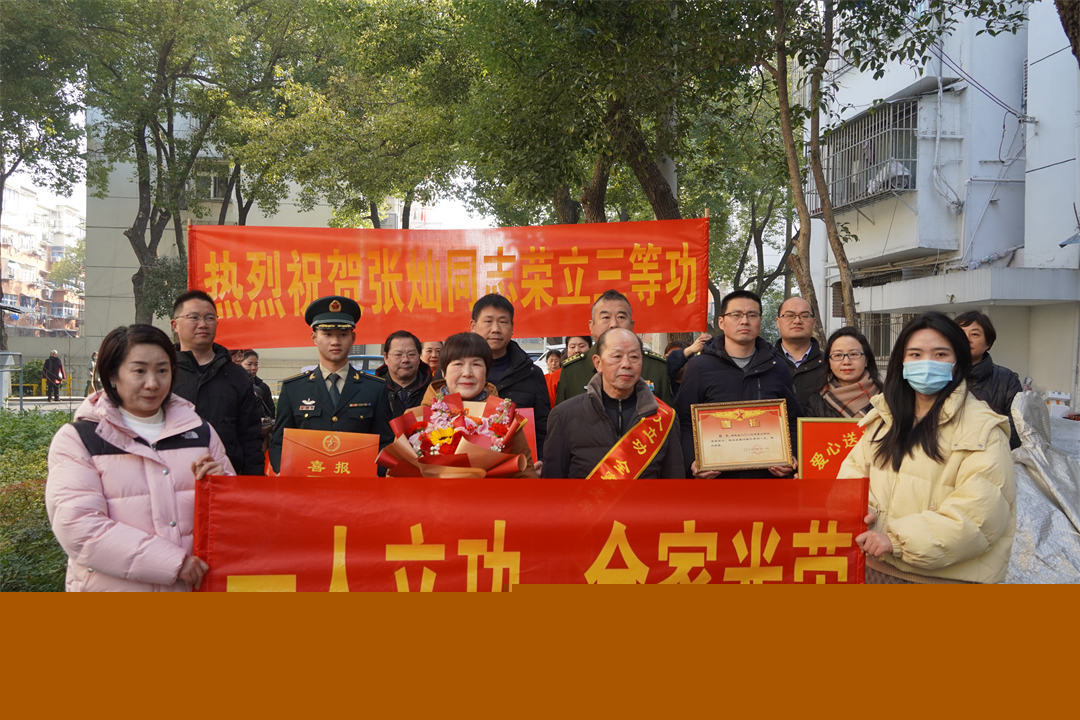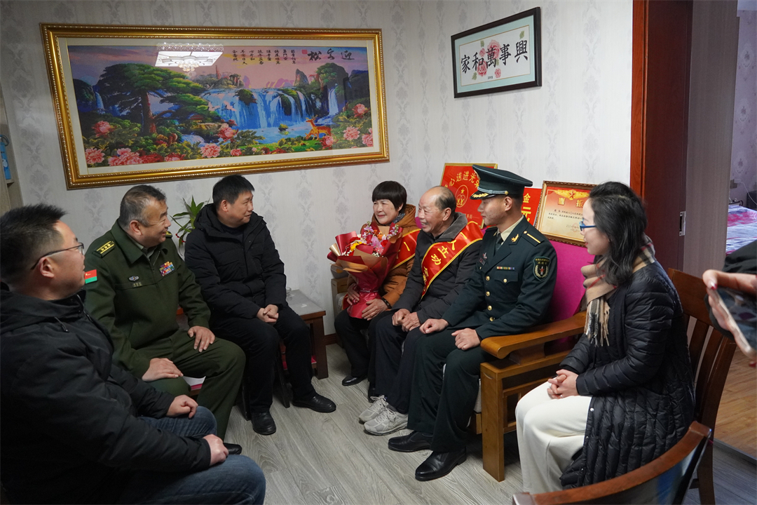 1月11日,安徽省馬鞍山市雨山區(qū)人武部聯(lián)合軍地有關(guān)部門,為榮立三等功的火箭軍某部軍官張燦送上立功喜報(bào)和慰問金,營造“一人立功 全家光榮”的氛圍。