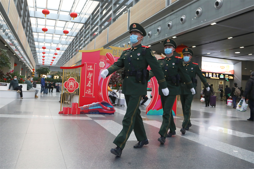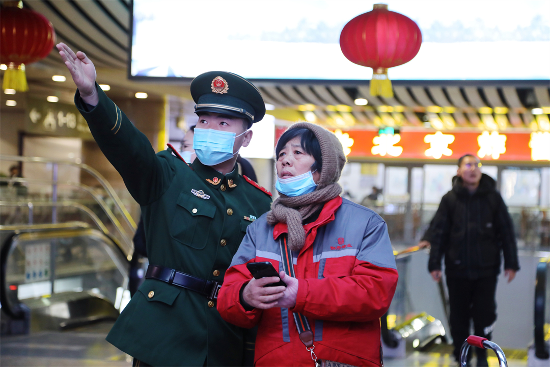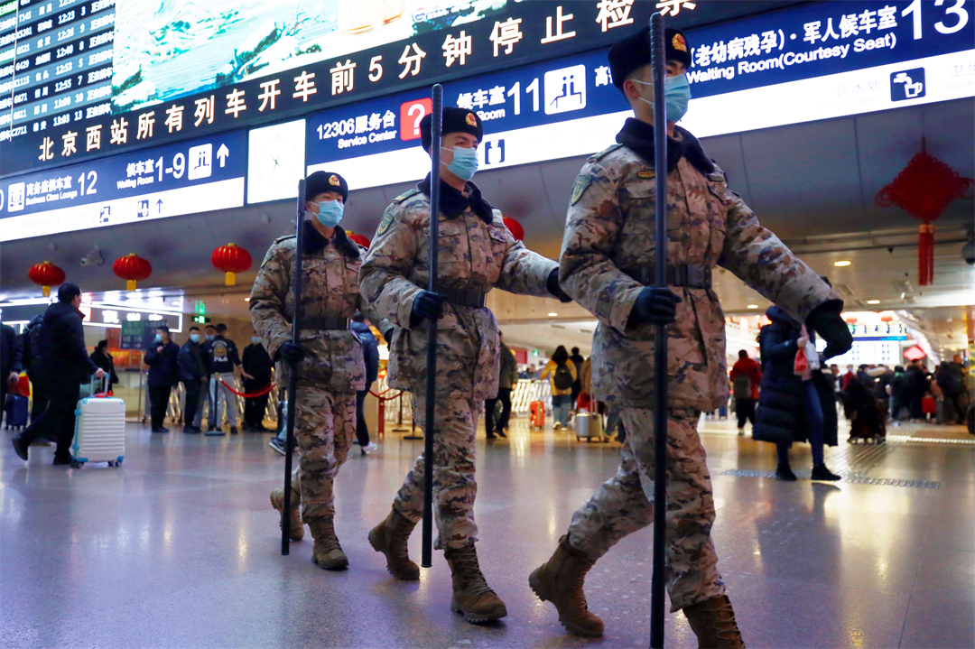 1月26日,全國春運正式拉開帷幕。擔(dān)負(fù)北京西站守衛(wèi)任務(wù)和北京豐臺站定點警戒任務(wù)的武警北京總隊執(zhí)勤第六支隊官兵堅守執(zhí)勤戰(zhàn)位,熱心為群眾提供幫助,以實際行動溫暖守護(hù)旅客歸鄉(xiāng)路。
