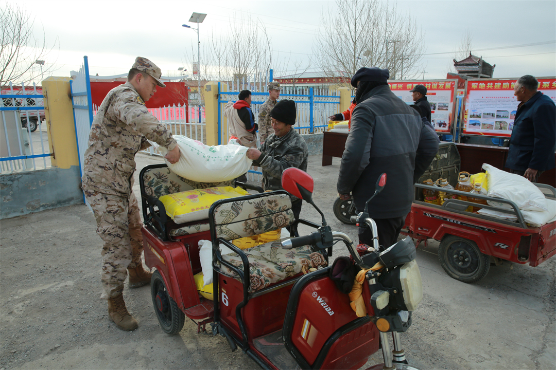 圖為武警官兵為村民送上慰問品。