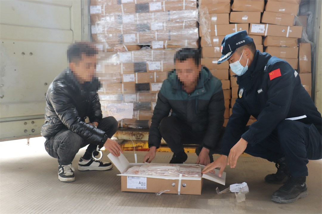 圖為嫌疑人指認(rèn)走私凍品現(xiàn)場(chǎng)。