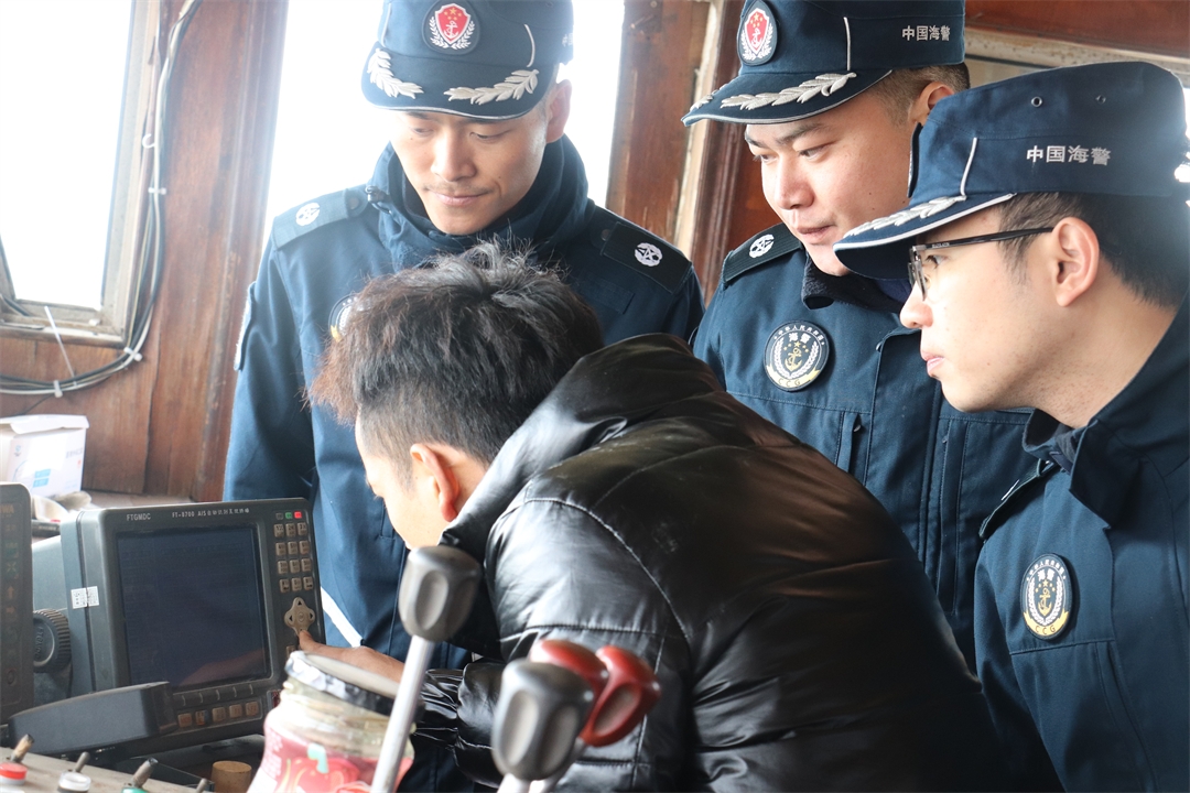 圖為海警執(zhí)法員詢問航行軌跡。