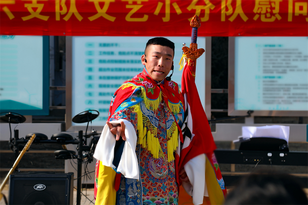 圖為文藝小分隊來到任務(wù)一線慰問表演。