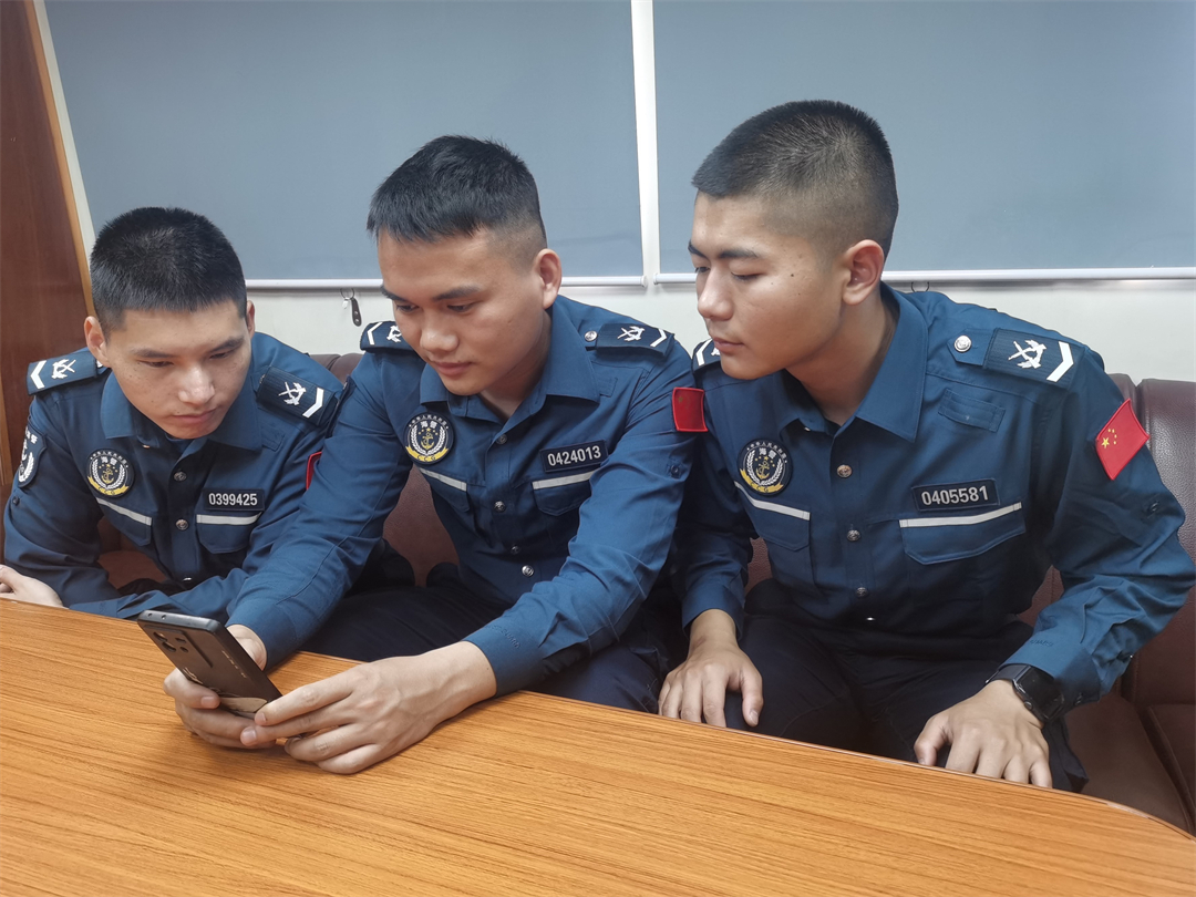 圖為執(zhí)法員正在甲板上進(jìn)行國家安全主題討論交流。