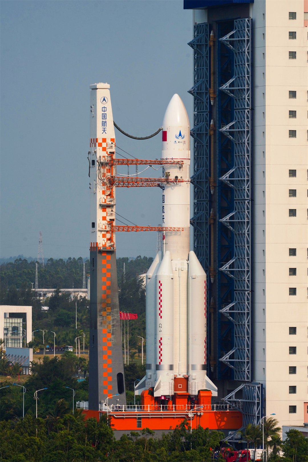 3月12日13時(shí),長(zhǎng)征五號(hào)遙八火箭搭乘遠(yuǎn)望21號(hào)和遠(yuǎn)望22號(hào)運(yùn)輸船順利抵達(dá)海南文昌清瀾港。3月15日,長(zhǎng)五遙八火箭通過(guò)陸路運(yùn)輸,安全運(yùn)抵中國(guó)文昌航天發(fā)射場(chǎng)廠房,火箭隨即開(kāi)始箭體總裝測(cè)試工作。