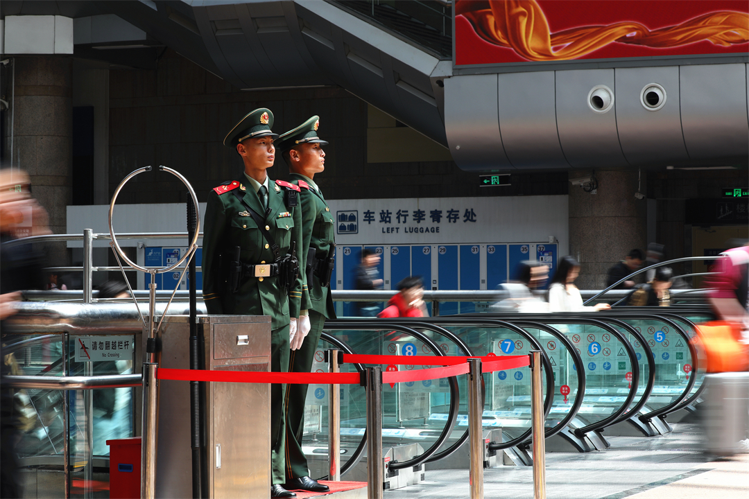 圖為武警在站內(nèi)執(zhí)勤維護(hù)秩序。周啟新 攝