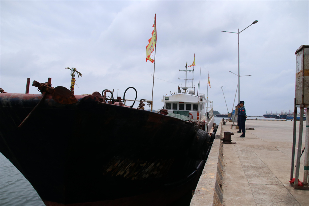 5月9日23時許,陽江海警局接報稱,陽江市陽江港附近海域一艘可疑船舶正在靠岸上貨,請海警執(zhí)法員前往處置。該局經(jīng)研判核實,采取海陸聯(lián)動方式對現(xiàn)場開展攔截控制行動,海警執(zhí)法員分別從陸路及海路火速前往可疑船舶靠岸地點進行查緝。
