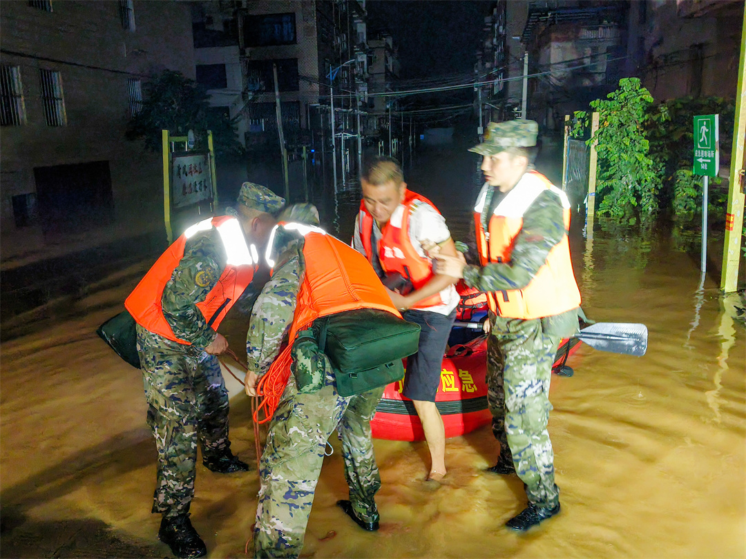 圖為武警官兵轉(zhuǎn)移受災(zāi)群眾。盧泳鋼 攝