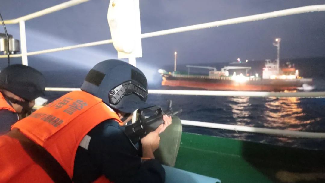 在海上抓捕現(xiàn)場(chǎng),凌晨的海面風(fēng)高浪急、暗流涌動(dòng),不良海況天氣給收網(wǎng)行動(dòng)增加不少難度。海警執(zhí)法員操縱執(zhí)法艦艇破浪前行,最終在目標(biāo)海域鎖定嫌疑船舶,執(zhí)法艦艇準(zhǔn)確把握時(shí)機(jī),迅速靠幫登臨嫌疑船只成功將其控制。此次行動(dòng)共抓獲犯罪嫌疑人9人,繳獲疑似毒品70余袋。