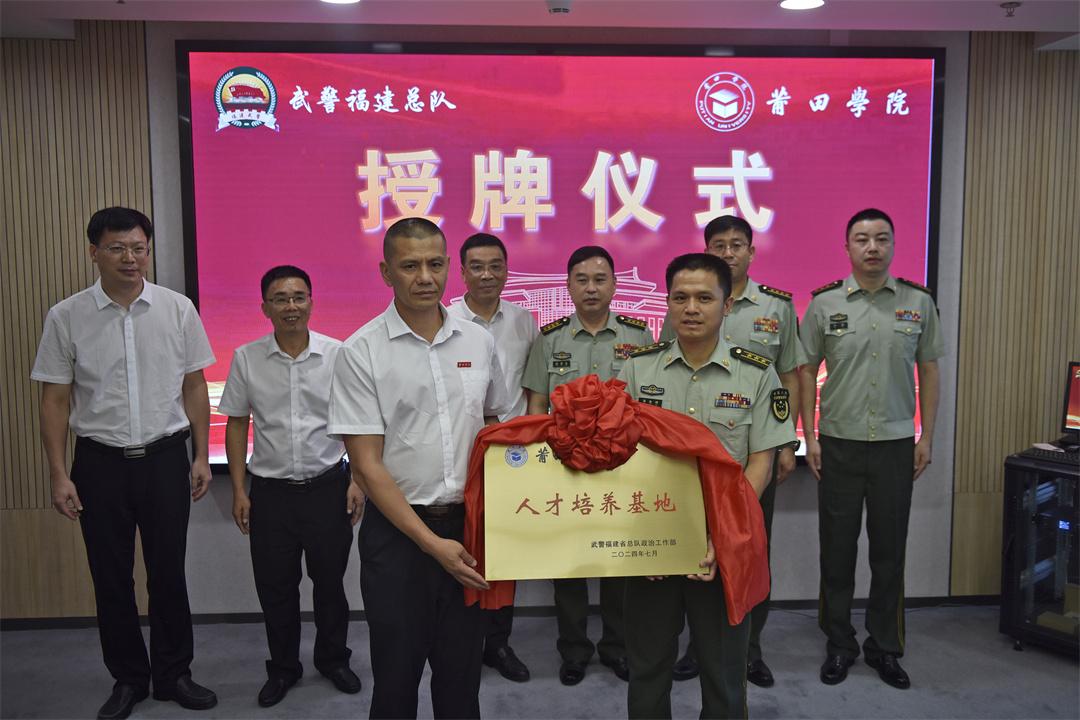 儀式最后,武警福建總隊向莆田學院贈授“武警福建總隊人才培養(yǎng)基地”掛牌。