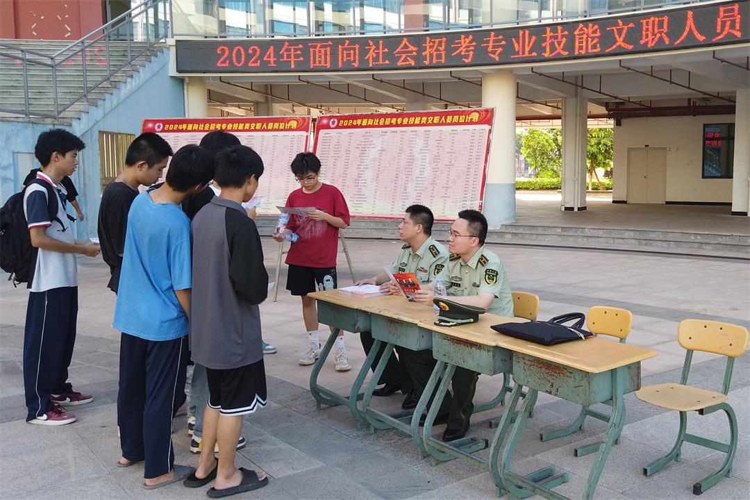 同一時間,武警福建總隊文職人員招聘宣講員來到莆田職業(yè)技術學校進行宣講活動,通過召開政策宣講會、張貼宣傳海報、現(xiàn)場答疑咨詢等方式,讓在校學生更加詳細全面地了解文職人員招考條件和要求,鼓勵更多有志青年加入“孔雀藍”,為軍隊文職人員方陣注入新鮮血液。