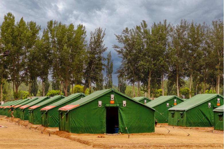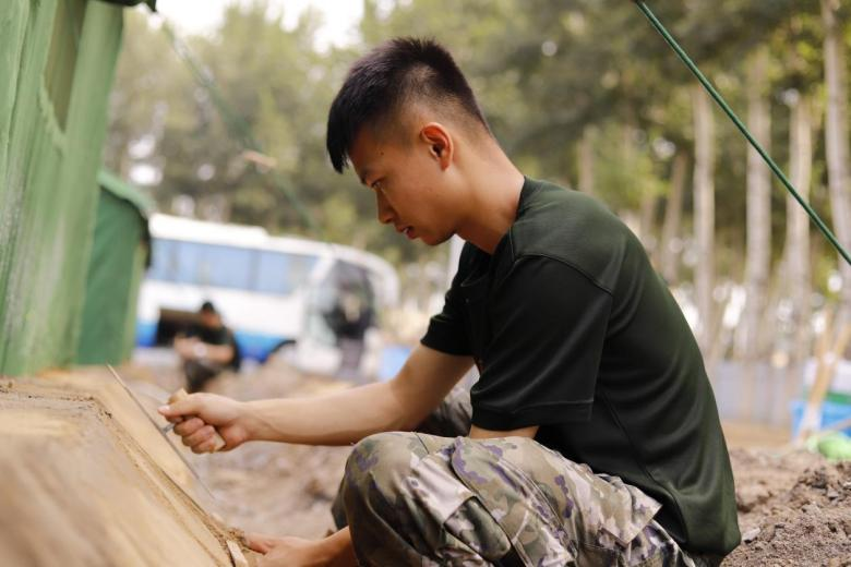 抵達駐訓場后,各單位迅速展開物資卸載、土地平整、通水通電、帳篷搭建等工作。