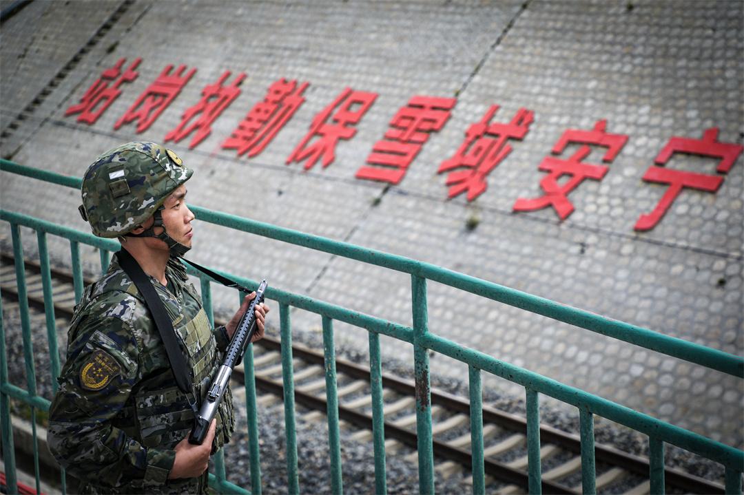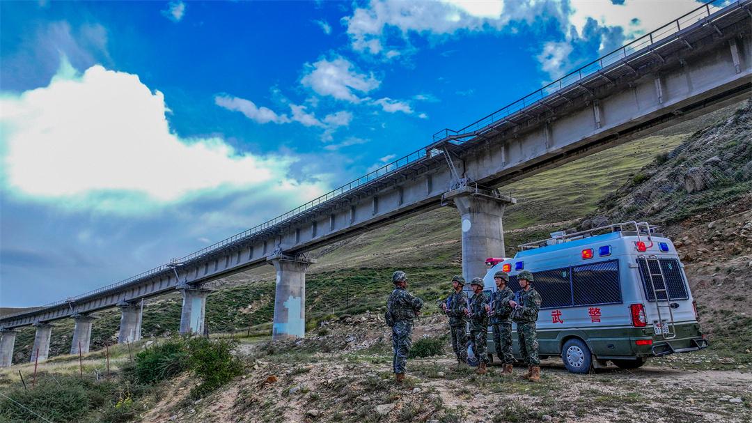 圖為武警官兵守護(hù)青藏鐵路。